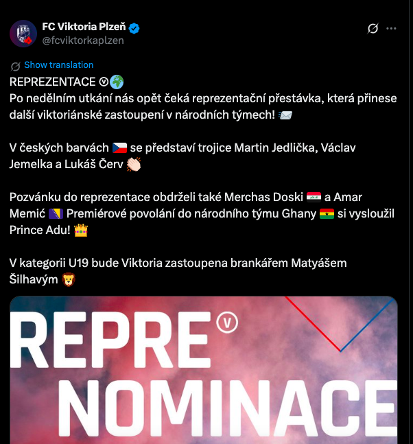 Prince Kwabena Adu’s Black Stars invitation has been confirmed by Viktoria Plzen.